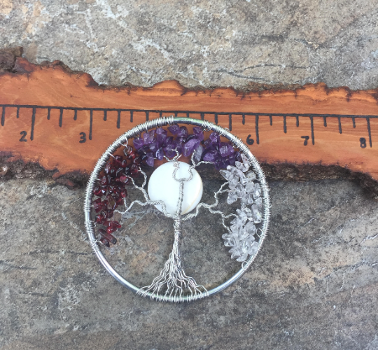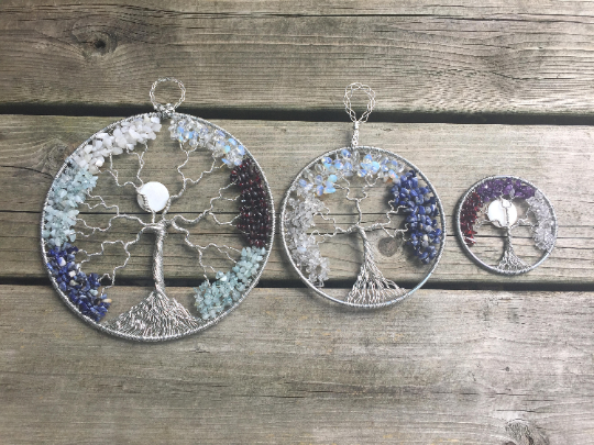 Every piece that I make is lovingly and thoughtfully handcrafted in my studio. All the jewellery, decor, and altar tools I make are handcrafted -- some pieces are made by assembling charms and stones, others are made completely from scratch using wire and stones. Aside from a small selection of one of kind pieces which are available for immediate purchase, I make every order when I receive it. Some of the jewellery and decor pieces, such as wire wrapped trees, can take several hours of meticulous work to come to life.